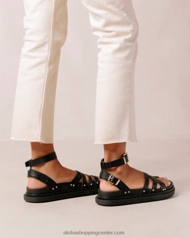 črni veganski usnjeni gladiatorski sandali z zaponkami