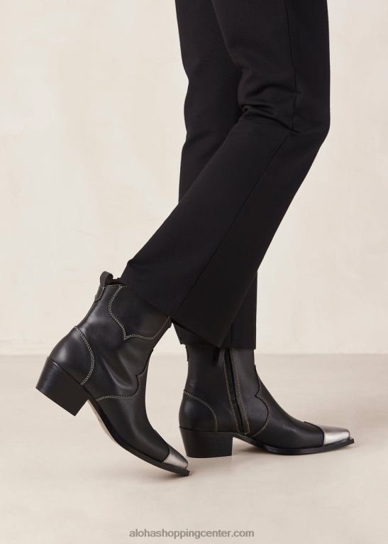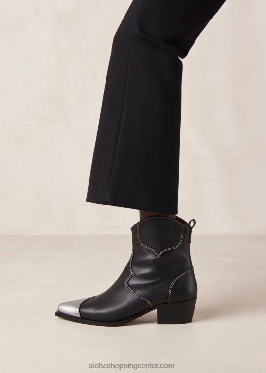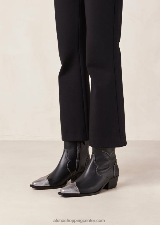 črno-srebrni usnjeni kavbojski gležnjarji