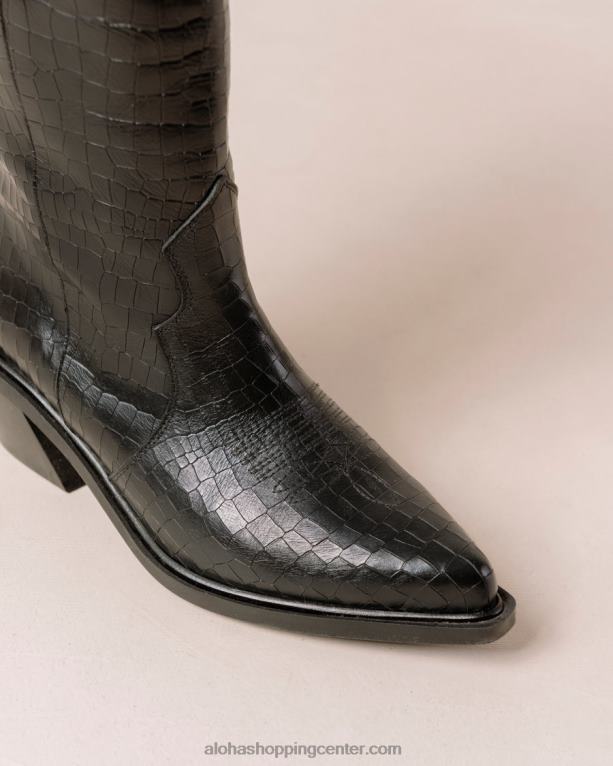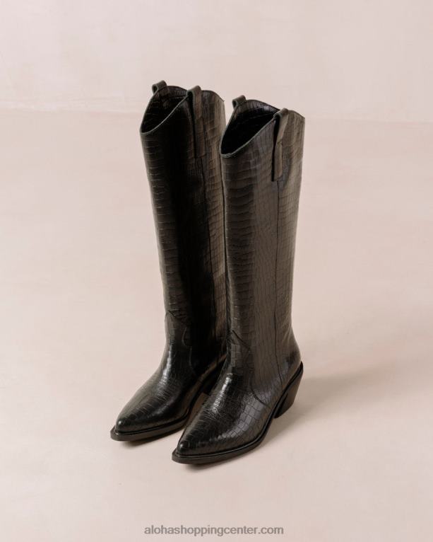 zavrtite se, punce! kavbojski škornji so nazaj in ne gredo nikamor. Navdihnjen z ikoničnim zahodnjaškim slogom, je ta par izdelan iz črnega krokodilnega usnja s subtilnim vezenjem vzdolž koničastega prsta in klasičnimi jezički za vlečenje. zamenjajte svoje sandale za par teh in se kot profesionalec podate v največji trend jesenske sezone.