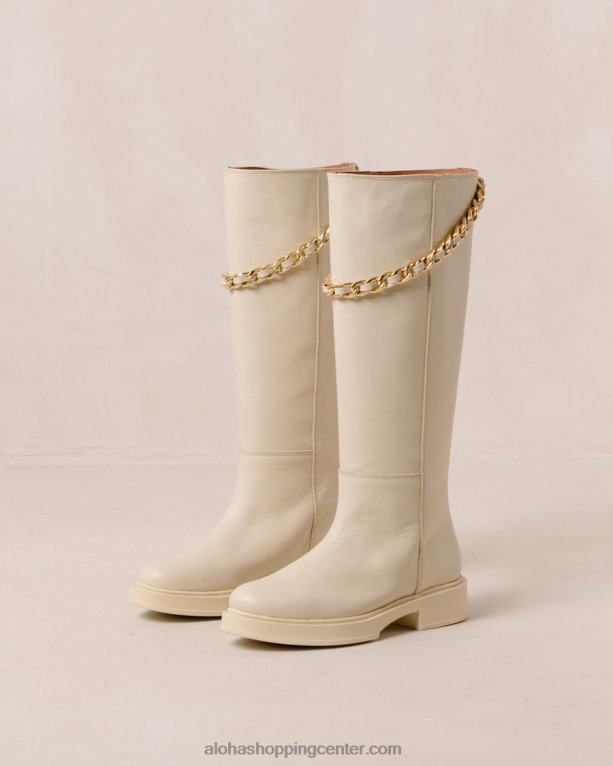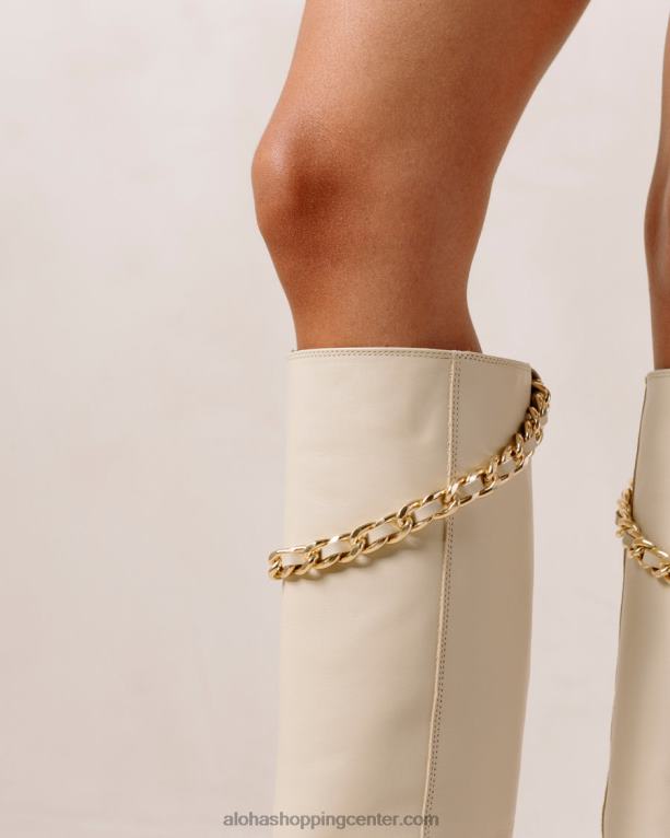 nevtralni odtenki so obvezni jeseni, zato so ti beli usnjeni visoki škornji popolni, da jih obujete z vašim najljubšim trenčkotom. imajo nizko peto, ki subtilno podaljša nogo, na vrhu pa je tudi velika zlata verižica, ki se ovije okoli noge – le še en način, da v svojo dnevno obleko vključite dodatno dozo sijaja. čudovito!