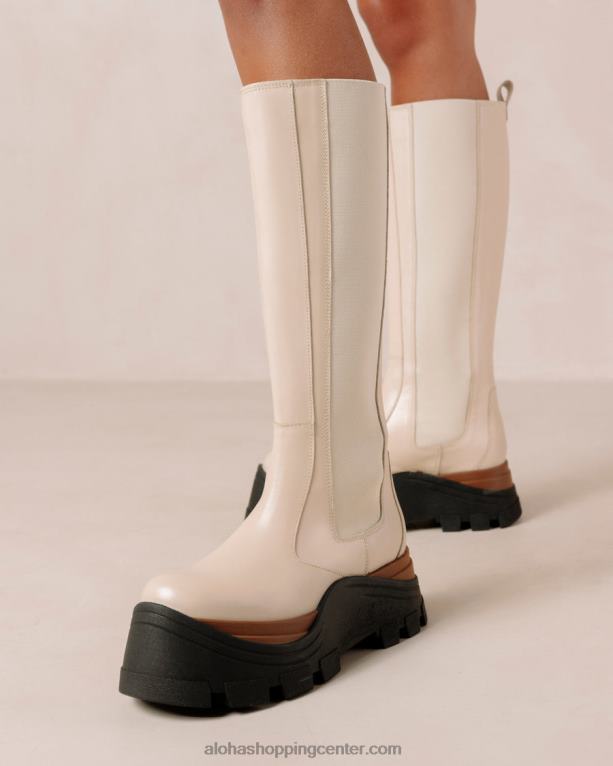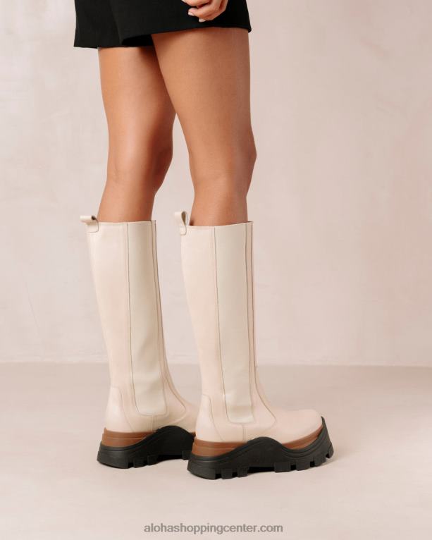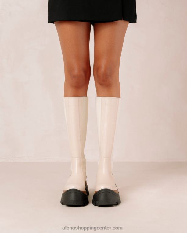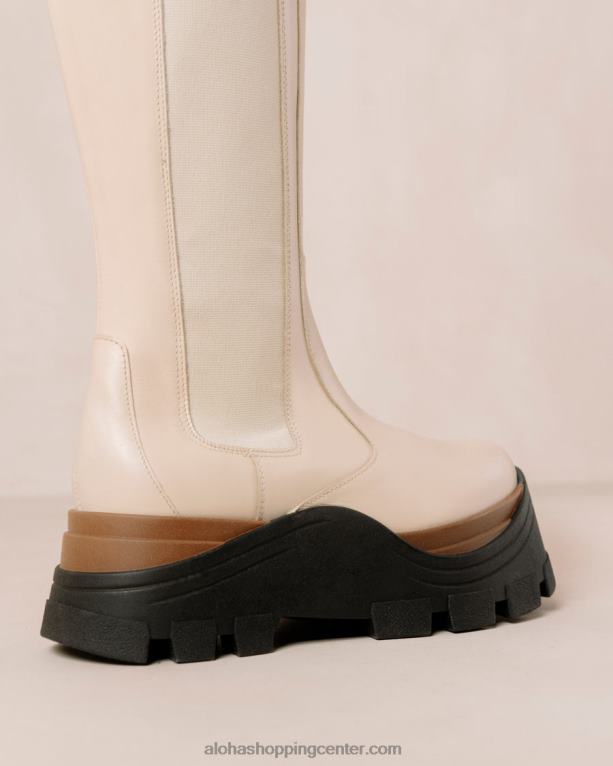 Beli usnjeni škornji do kolen s kontrastnimi podplati