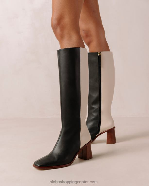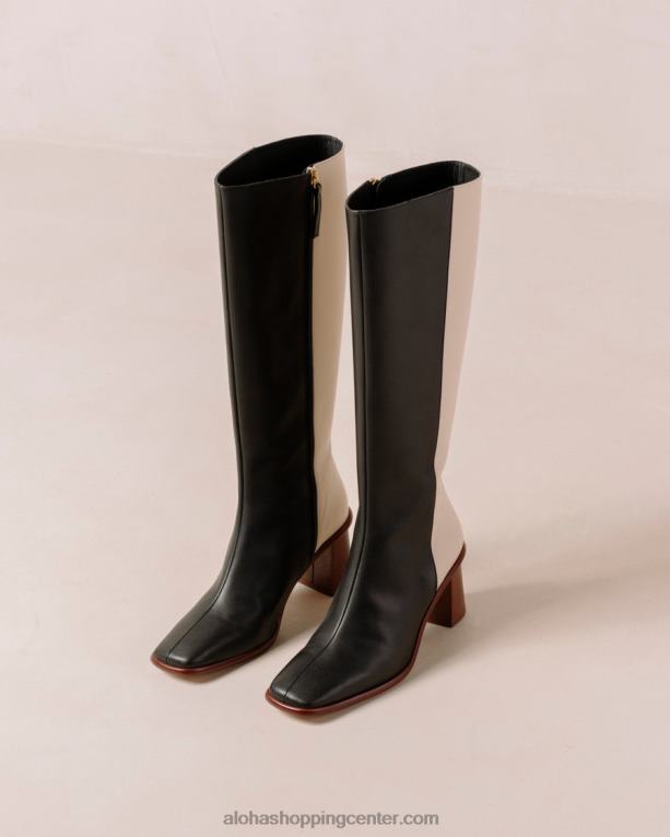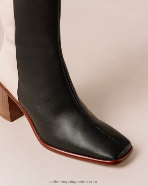 ikonični škornji z visokimi koleni, ki jih morate imeti, zdaj izdelani iz dvobarvnega črno-belega usnja. ti brezčasni visoki škornji imajo oglato konico in stransko zadrgo za dodatno udobje. njihova podolgovata blok peta doda laskavost in pizzazz vaši opornici. razširite svojo ponudbo obutve z glamuroznim parom east in stopite v hladnejše dni v stilu.