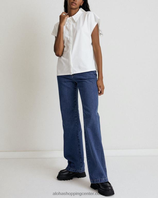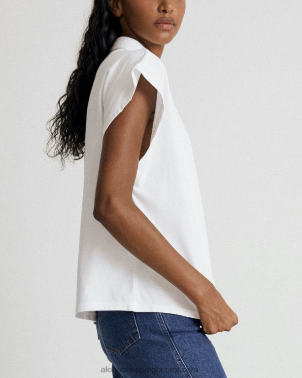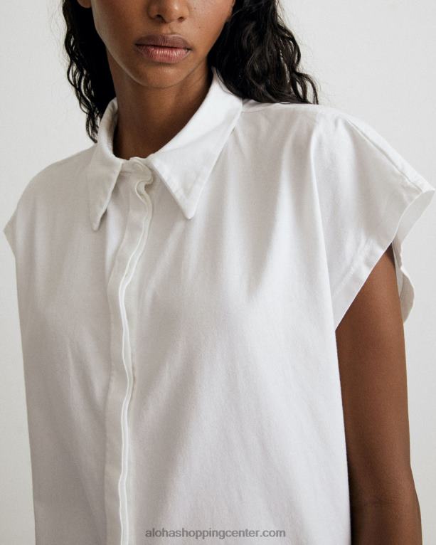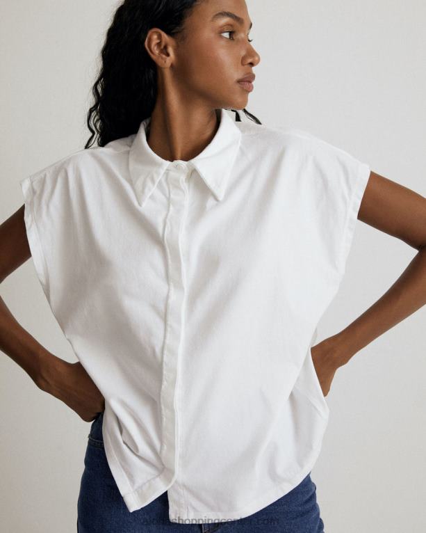 bela bluza s sprednjimi gumbi in dizajnom brez rokavov