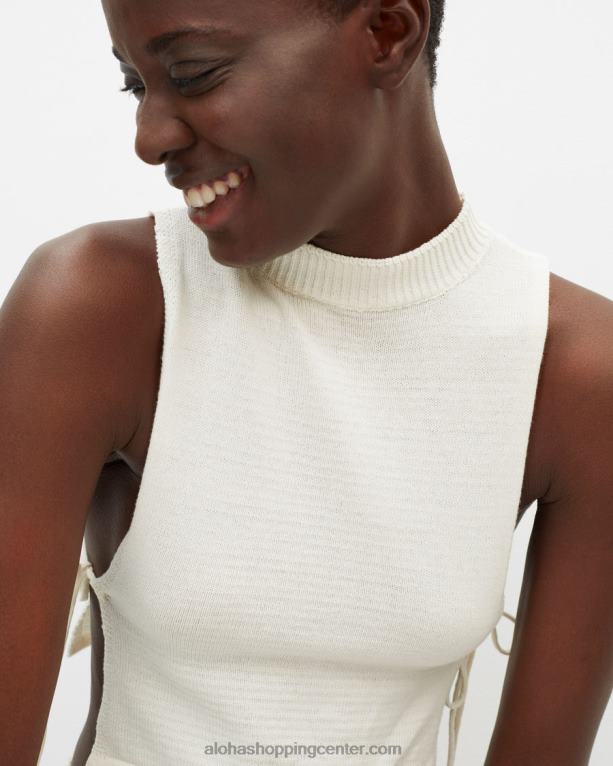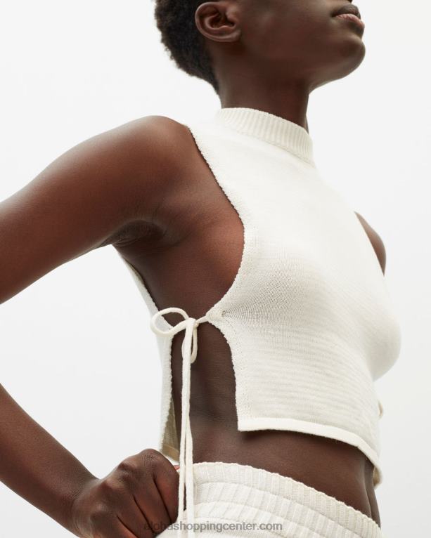 rebrasti brezrokavnik kremne barve s čipkastim detajlom