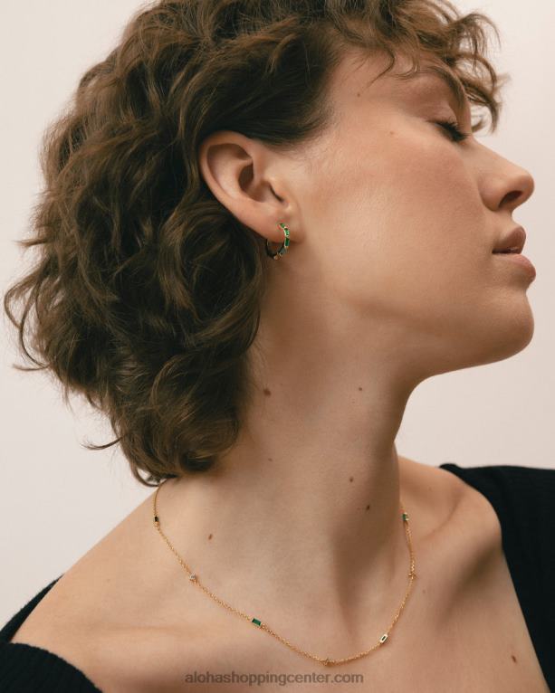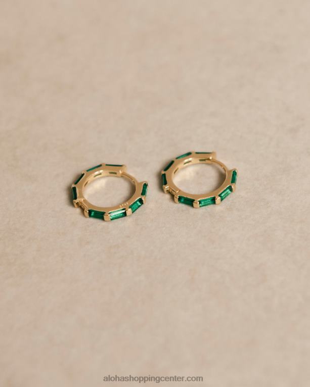 pozlačeni obročasti uhani z zelenimi dragimi kamni