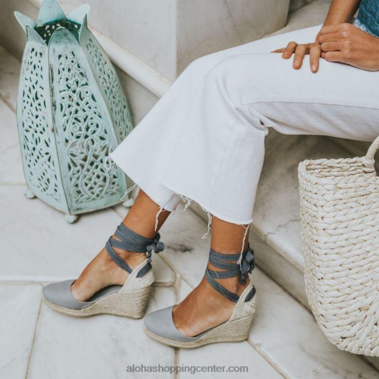 značilni slog v repertoarju alohas, clara espadrile so ročno izdelane v Španiji s strani lokalnih obrtnikov. Ta siv par je izdelan iz trpežnega platna in opremljen s tradicionalnim podplatom iz jute. ovijte dolge kravate okoli gležnjev in jih zavežite v lepo pentljo – lahko jih nosite s spogledljivimi robovi ali jih oblikujete s kavbojkami, da jeseni vnesete malo poletne romantike.