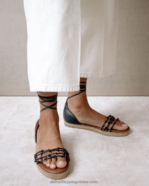 s štirimi tanko zavozlanimi sprednjimi trakovi na podplatu espadrila z okroglo konico. zavezana do gležnja s tankim križanim trakom.