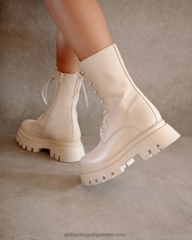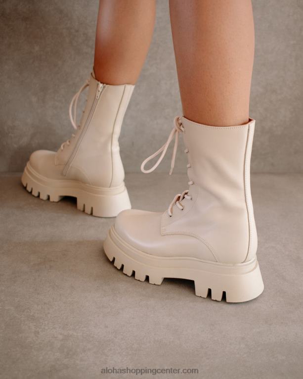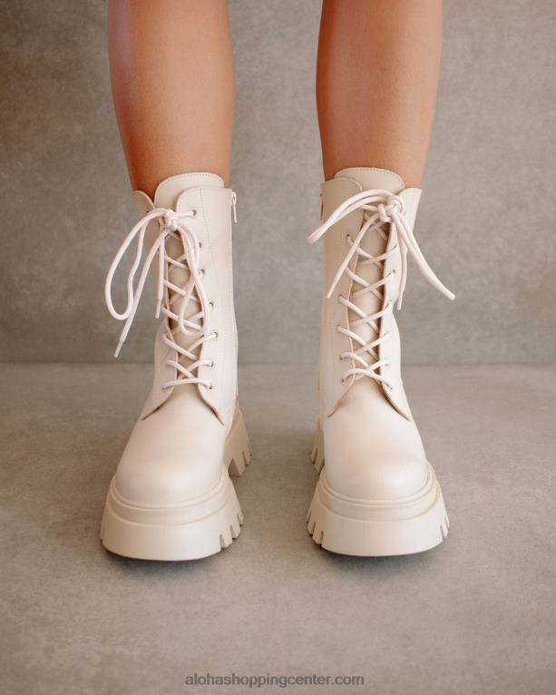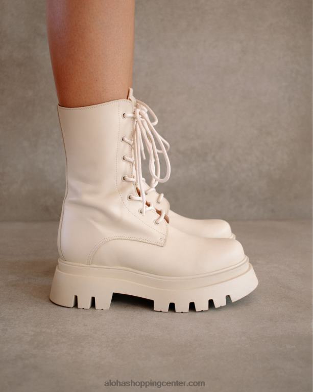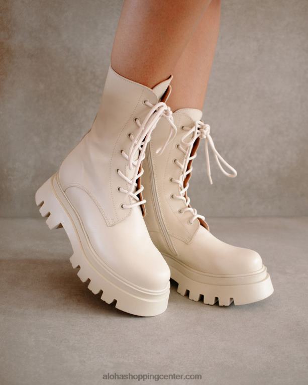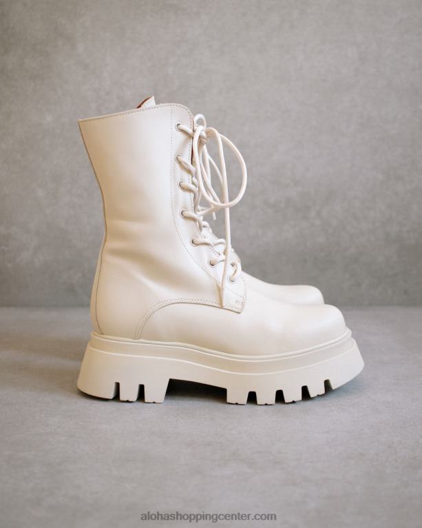 beli usnjeni bojni škornji na vezalke in podplati na stezah