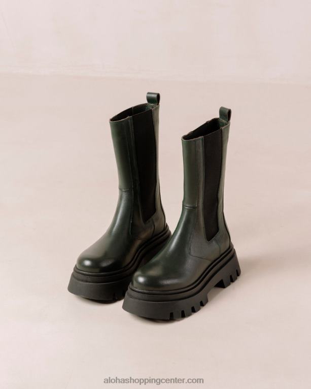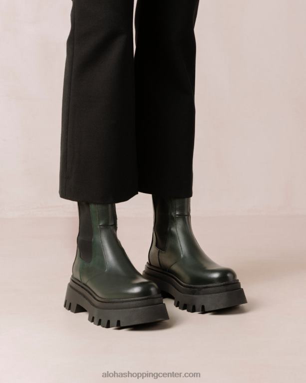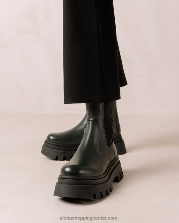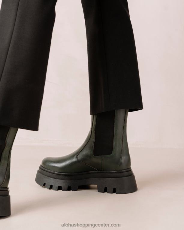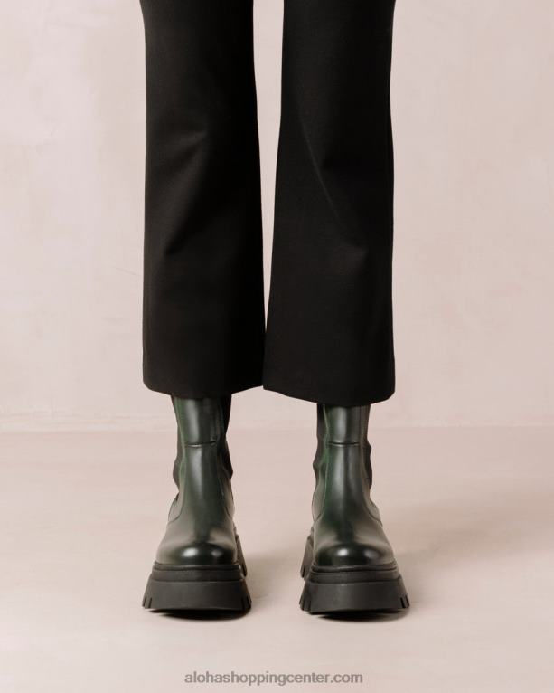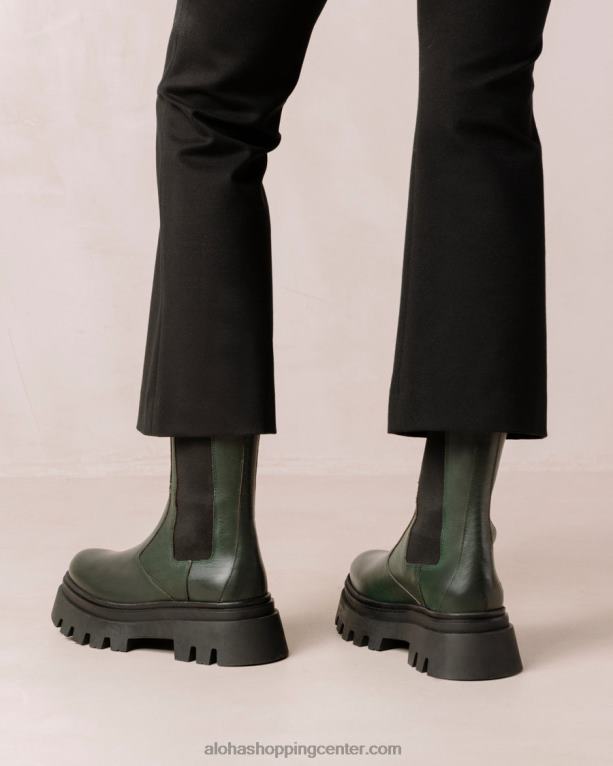 temnozeleni usnjeni chelsea škornji s podplati na progi