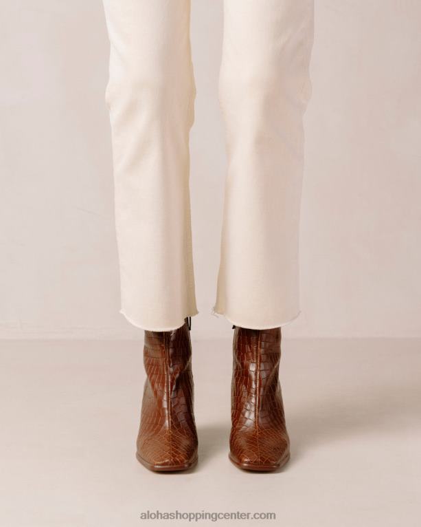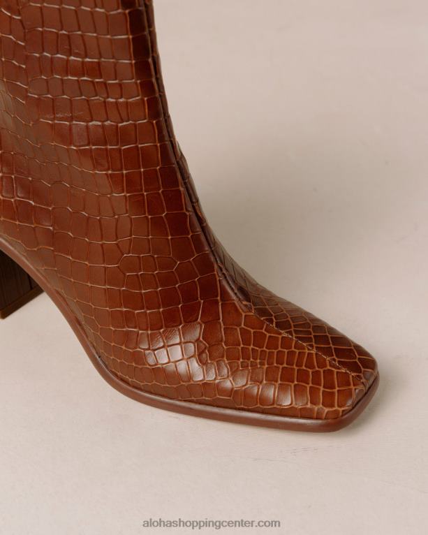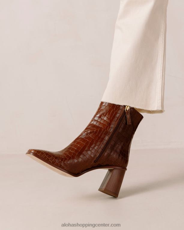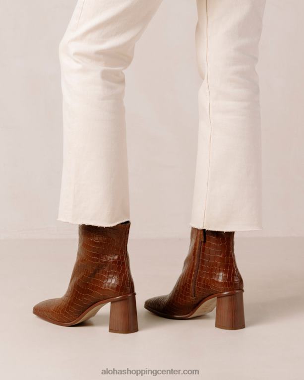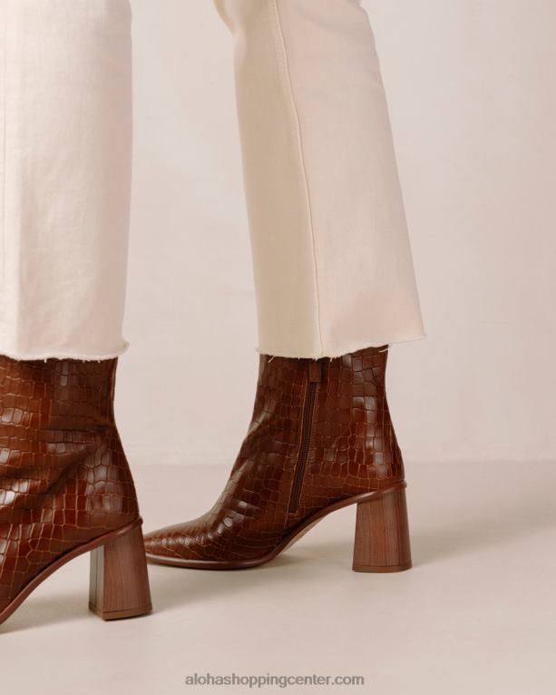 Rjavi usnjeni gležnarji z učinkom krokodila in blok peto