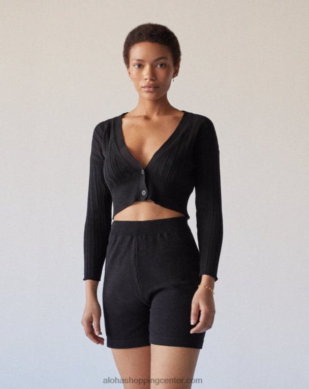 oprijete pletene kratke hlače v črni barvi