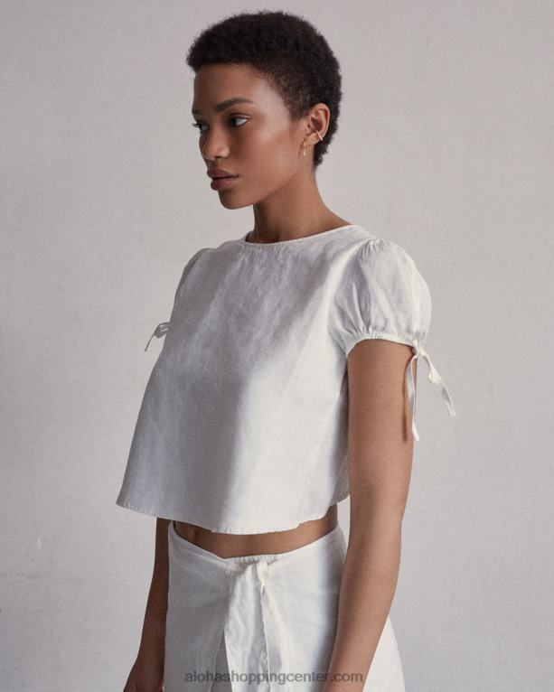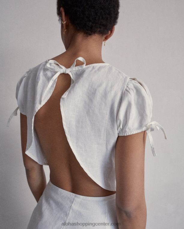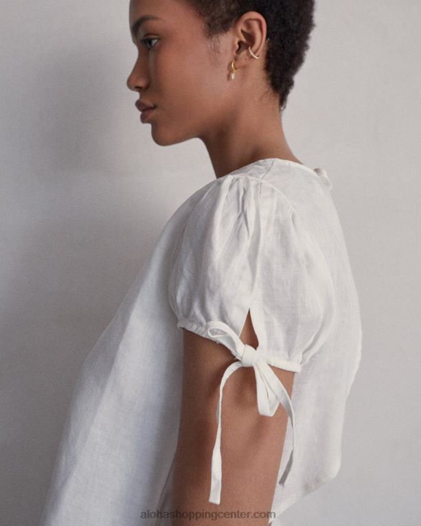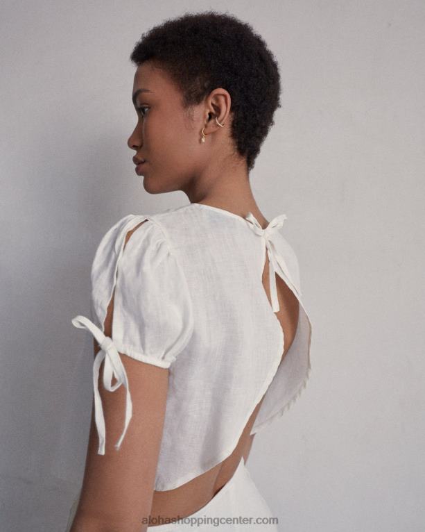 v enakih delih ležerna in spogledljiva majica Dreamland je izdelana iz breztežnega belega lanu. krojen je v preprosto, a ženstveno silhueto brez hrbta, ki bo ustrezala popolnoma vsem – od kavbojk do kril in ohlapnih krojev. rahlo napihnjeni rokavi in sladke pentlje bodo navdušili vašega notranjega otroka.