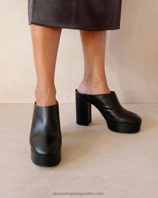 črne usnjene mule pete z zaprtimi prsti in blok peto