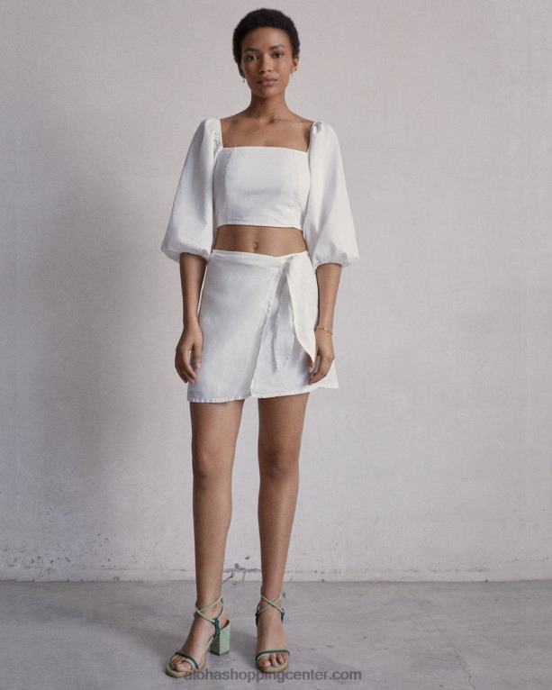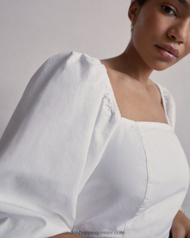 krojen iz belega lanu v odrezano silhueto, umetniški top ima voluminozne napihnjene rokave in nabran hrbet za raztegljivost in udobje okoli prsi. popolna enostavna majhna številka za ohlajanje v vročini – samo dodajte ljubko cvetlično krilo in sandale s paščki za poletno pripravljenost.