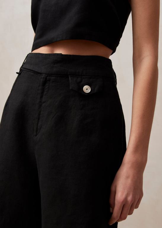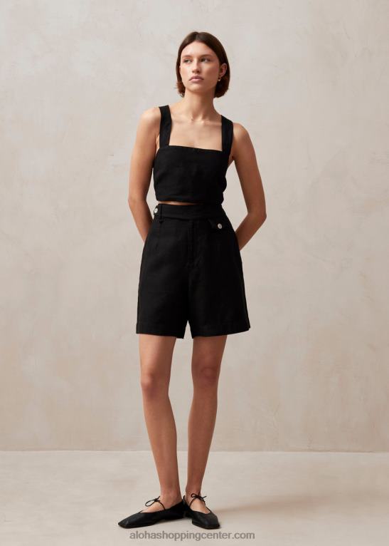 kombinirane *in* udobne - to so boa črne lanene kratke hlače za vas. ki pašejo na vrh hlačnih nogavic, je ta stil, pripravljen na poletje, odlična počitniška stalnica, še posebej, če ga nosite skupaj z ujemajočim se zgornjim delom rai. sedijo visoko v pasu in imajo stransko nastavitev za brezhibno prileganje. dodatne točke za najboljši videz, ko so nagubani, zato naj vas ne skrbi, da bodo videti neokrnjene, ko pridejo iz vaše ročne prtljage – vse je del igre.