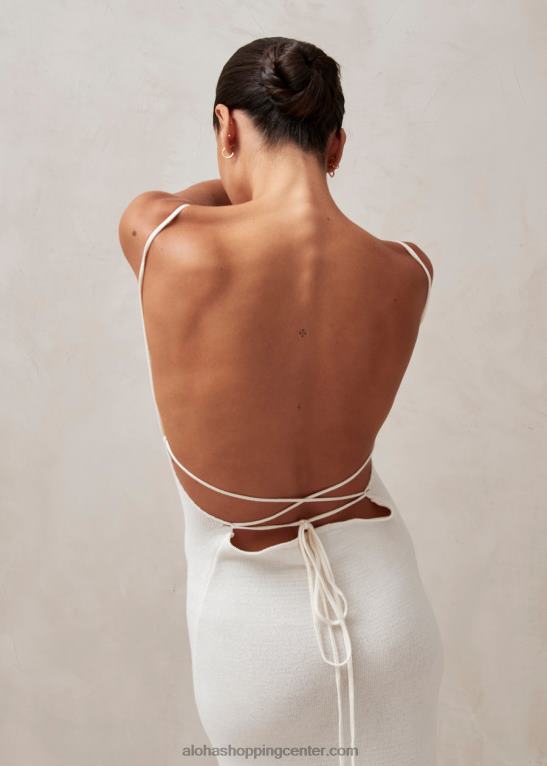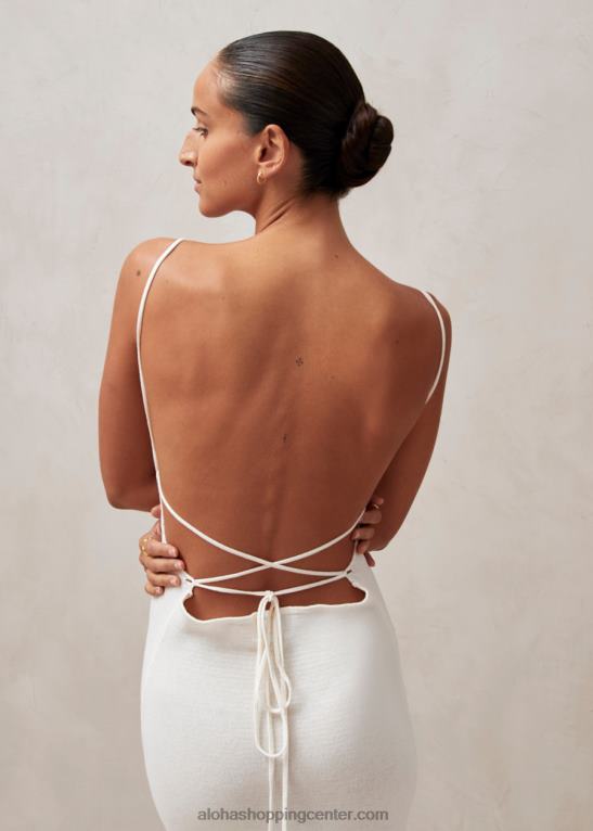 Naša nežna obleka, zasnovana za oprijeto postavo, zagotavlja prefinjeno udobje s klasičnim belim odtenkom in mehkim pletenim občutkom. ima skromen visok vratni izrez, ki ga uokvirjajo tanke naramnice, vendar se presenetljivo obrne in razkrije seksi odprt hrbet z nastavljivimi zavezami. nosite ga z debelim zlatim nakitom in našimi sandali bellini na čudovito mesto!a