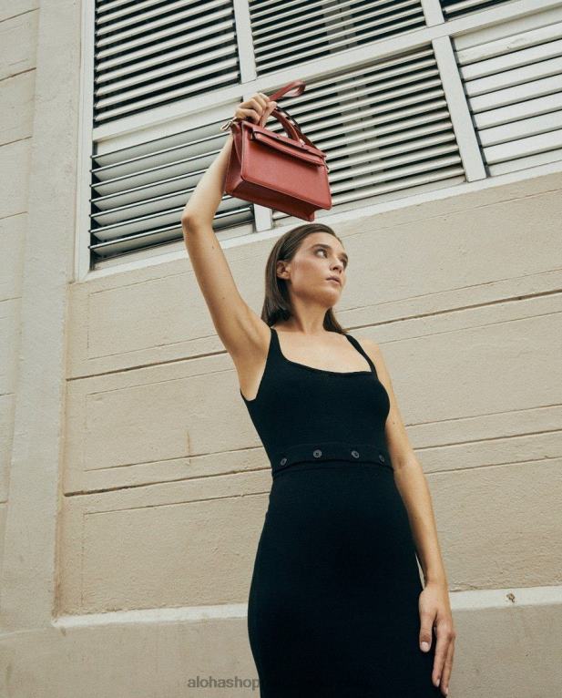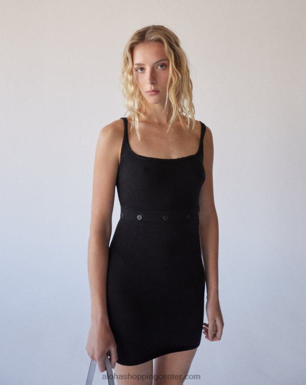 pletena obleka z gumbi znamke alohas je kot nalašč za tiste, ki imajo radi pridih vintage v svoji garderobi. črna barva je brezčasna, detajli gumbov pa dodajo pridih elegance. kombinirajte ga s svojimi najljubšimi petami za večerni izhod ali s sandali za bolj ležeren videz.