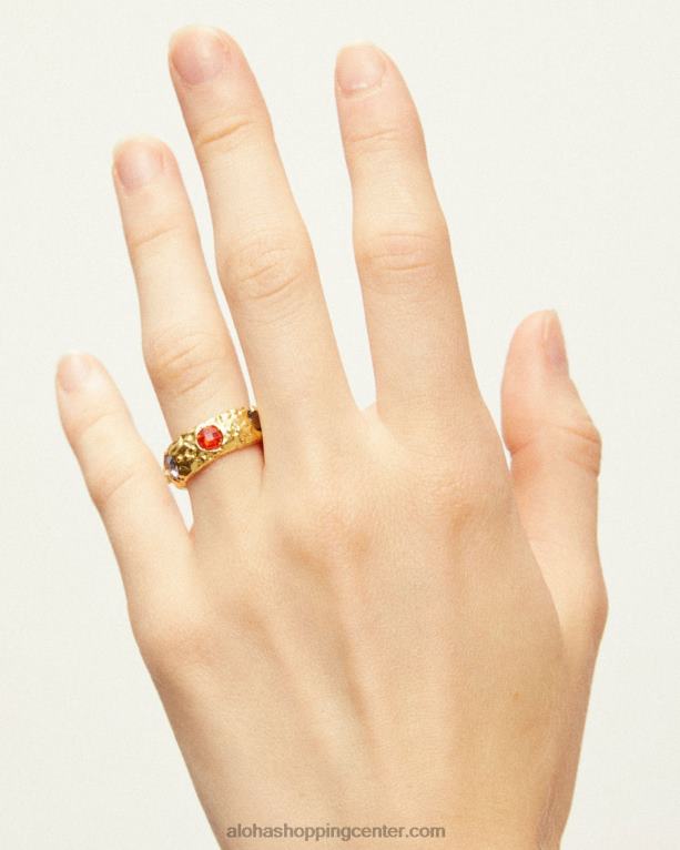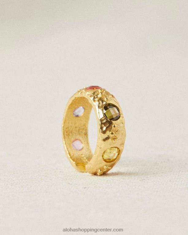 debel zlat prstan z dragimi kamni