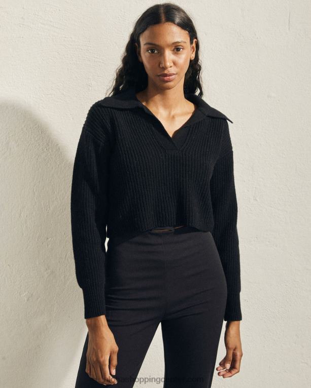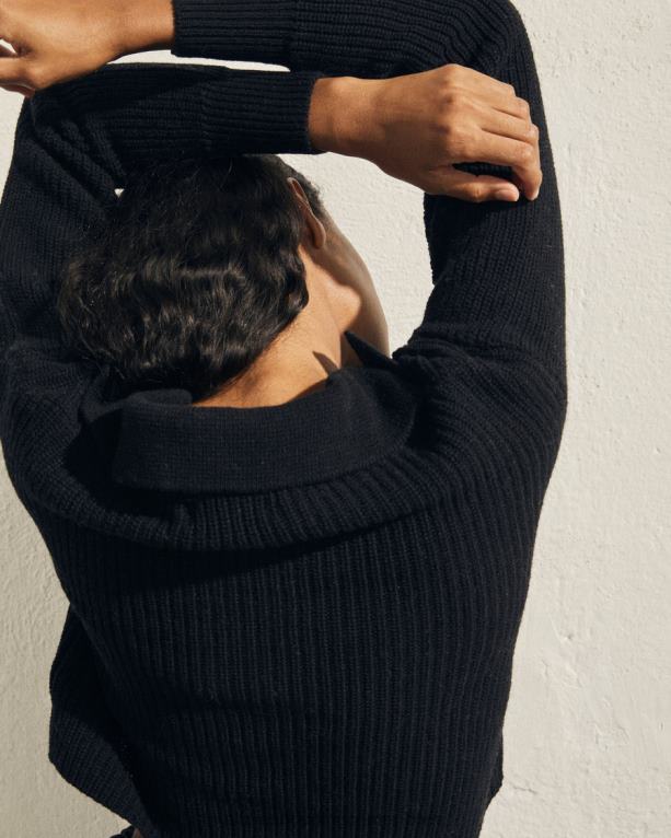 narejen iz mešanice volne in kašmirja, je letalo odlična možnost, da jo zložite pozimi. oblikovana je v odrezani silhueti, ki jo definirajo rebraste obrobe, in ima klasičen polo ovratnik. zaradi kratkega roba je ta črni pulover vsestranski tako, da ga zatlačiš v hlače z visokim pasom ali izpustiš. spodaj nanesite oprijeti ovratnik, ko vreme postane hladnejše.