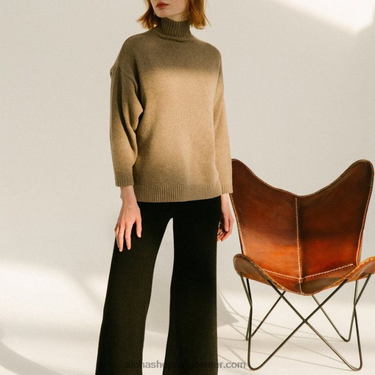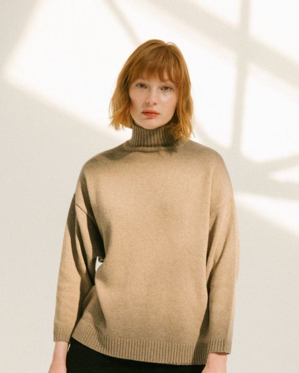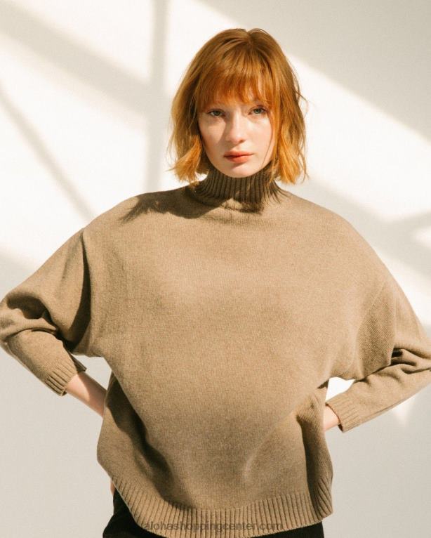 rjav volnen pulover z visokim ovratnikom