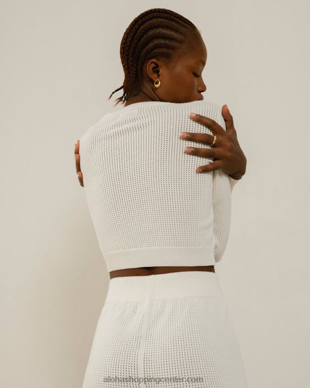 Roy, zasnovana za vse športne dame, je vaša modna privlačnost, ki jo navdihuje šport in prosti čas. izrezana je iz raztegljivega špic pletiva v klasičnem belem odtenku in ima rebra okoli ovratnika, spodnjega roba in manšet. nosite ga z začetniškimi hlačami, ki se ujemajo s kakršno koli vadbo – vadba joge, teki ob kavi in še veliko več.