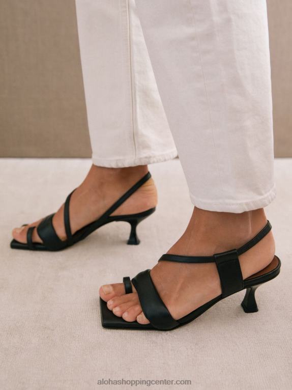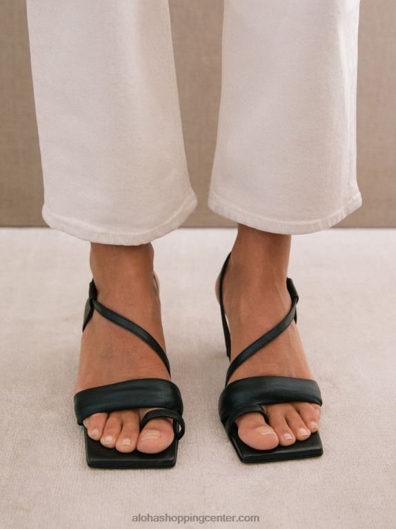 Ta par asimetričnih sandalov s paščki, ki so izdelani iz vrhunskega črnega usnja, bo videti čudovito z gamašami z razcepljenim robom in odrezanimi kavbojkami. čudoviti kvadratni prsti izboljšajo njihov sodoben, kiparski občutek, medtem ko oblazinjen sprednji trak in mehak prstni prstan objemajo in podpirajo stopala. opremljeni so s 6,5 cm mačjimi petami za udobje in dvig, vse v enem čevlju.