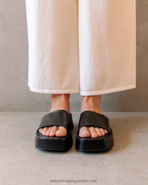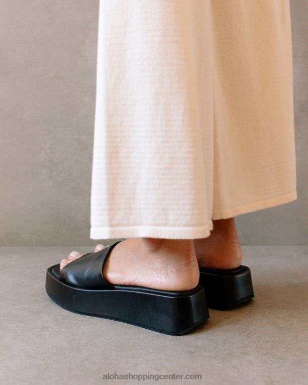črni veganski usnjeni široki sandali
