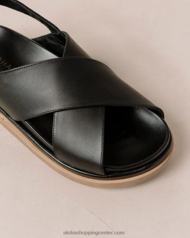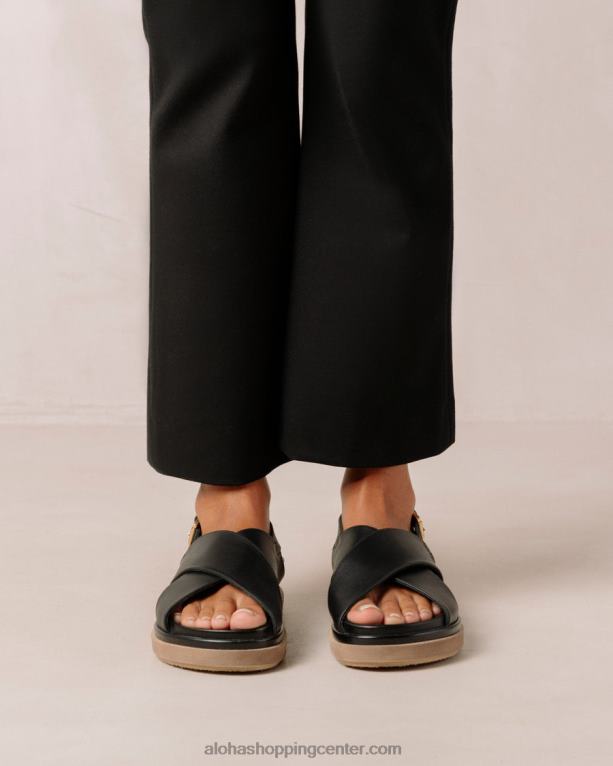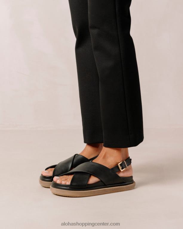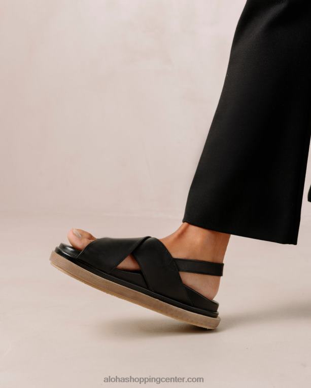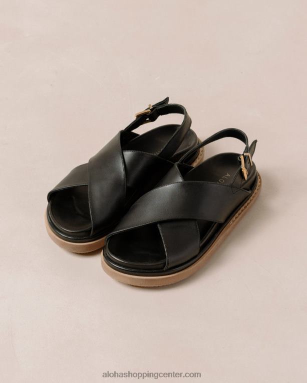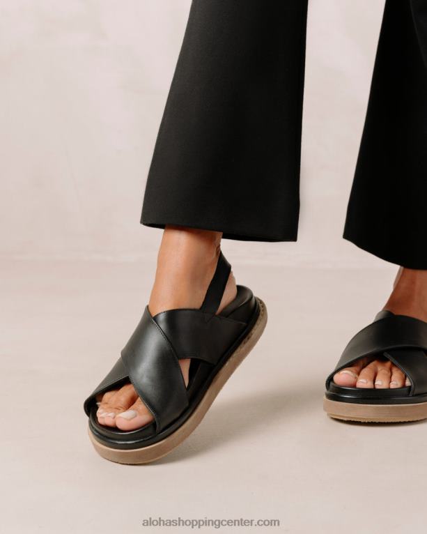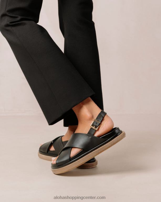 črni usnjeni crossover sandali s kontrastnim podplatom s platformo