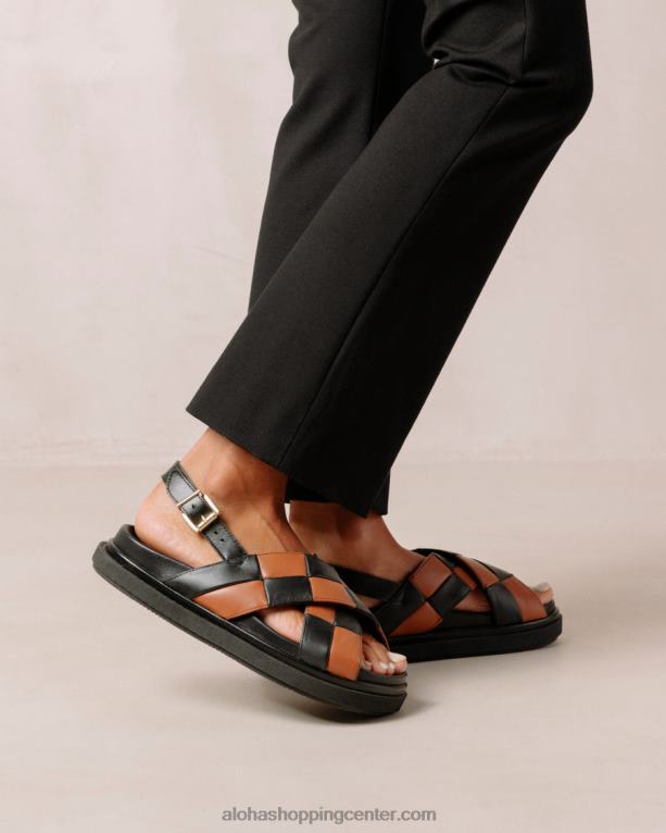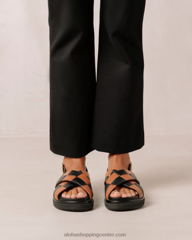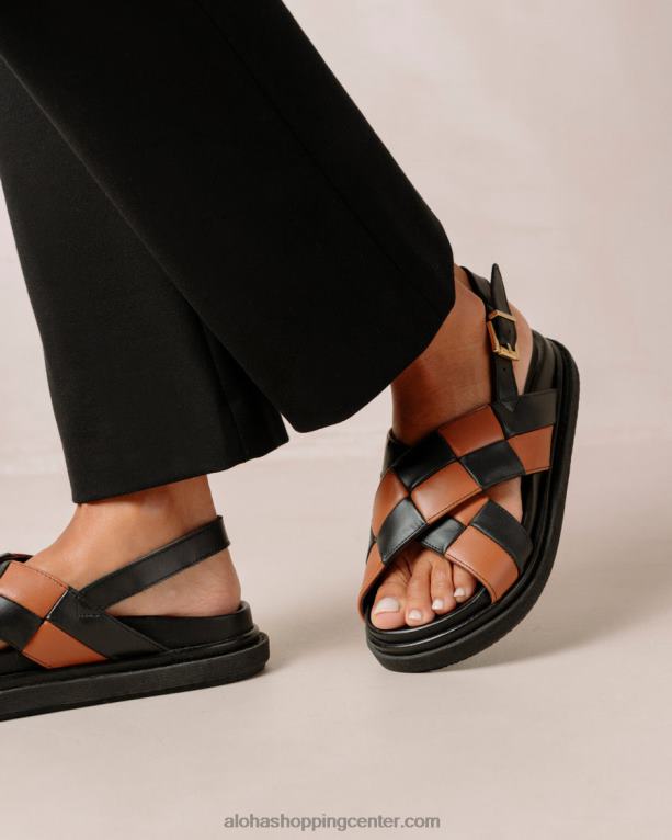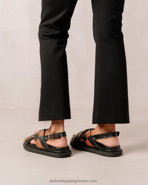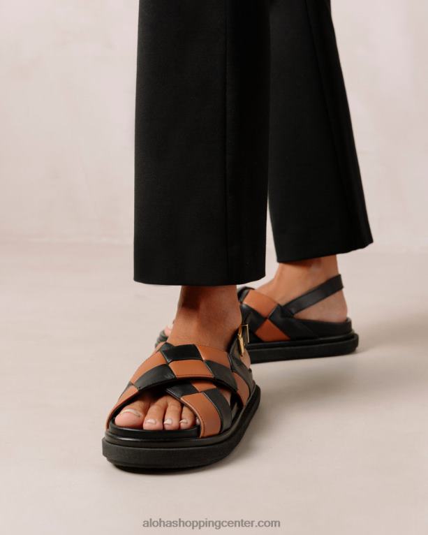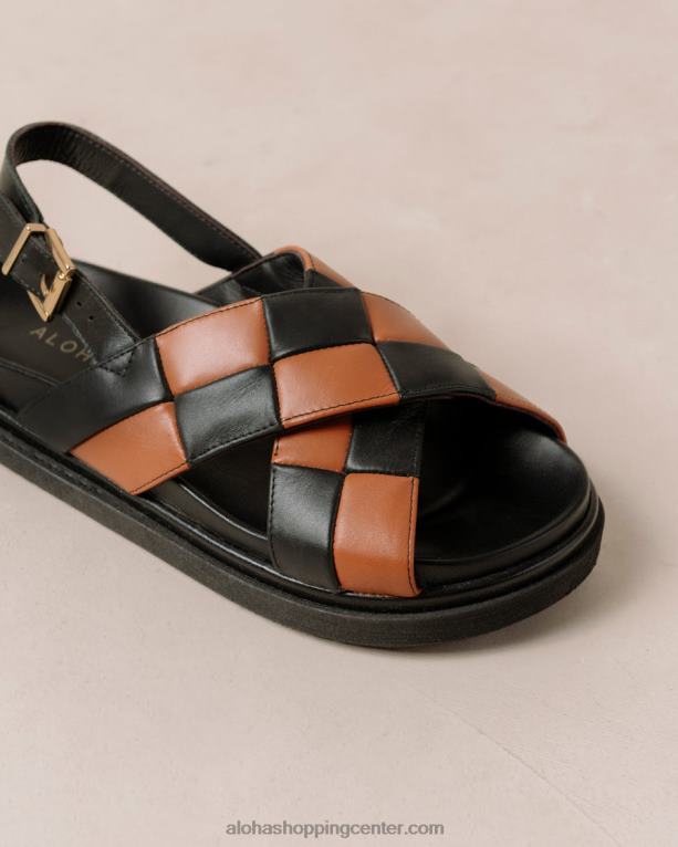 črni in rjavi usnjeni križni sandali v karo