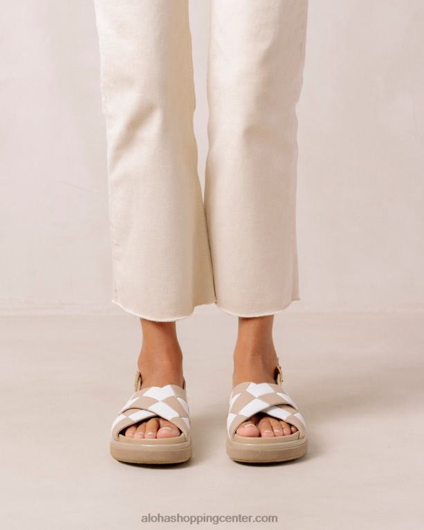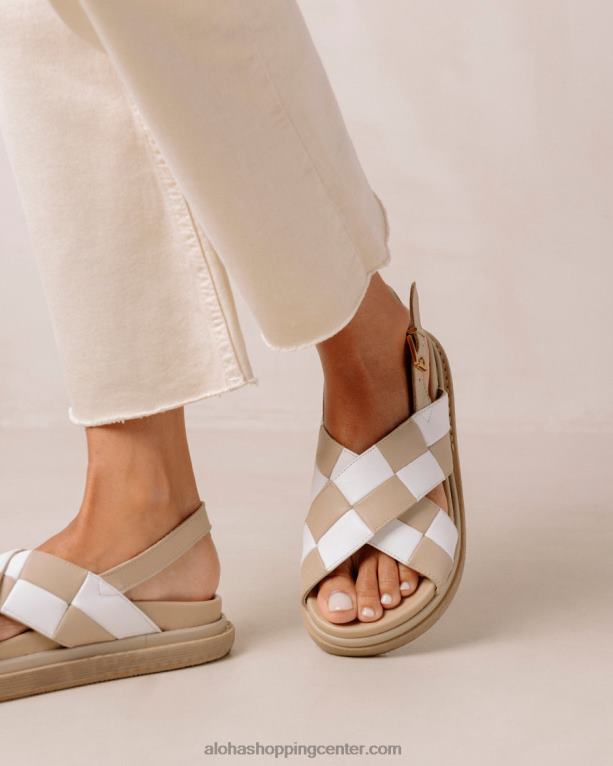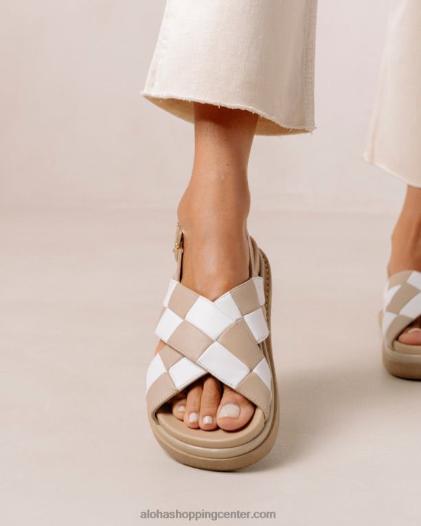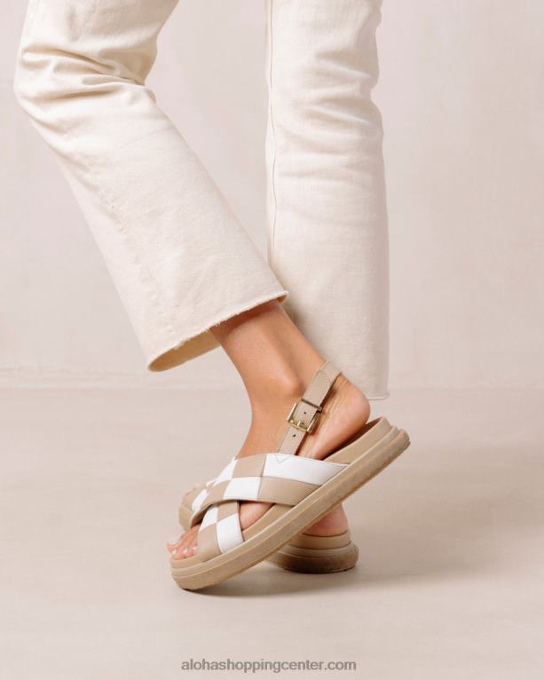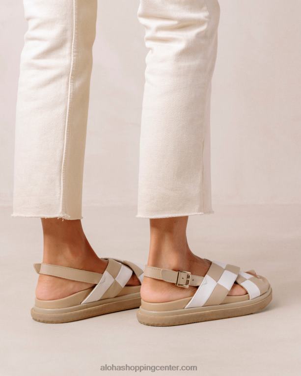 belo-bež usnjeni karirasti crossover sandali