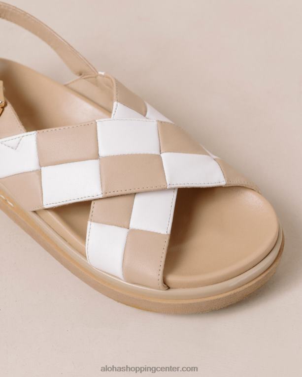 z marshmallow scacchi vrnite zabavo v obutev. ti igrivi navzkrižni sandali z zadrgo so izdelani iz belega in bež usnja, ki je bilo natančno ročno šivano, da ustvari modni karirasti vzorec. imajo oblikovane vložke za stopala, zložene gumijaste podplate in trakove z zaponkami, ki zagotavljajo vse udobje, ki ga iščete v popolnih čevljih za prosti čas – po tem paru boste posegali vse poletje!