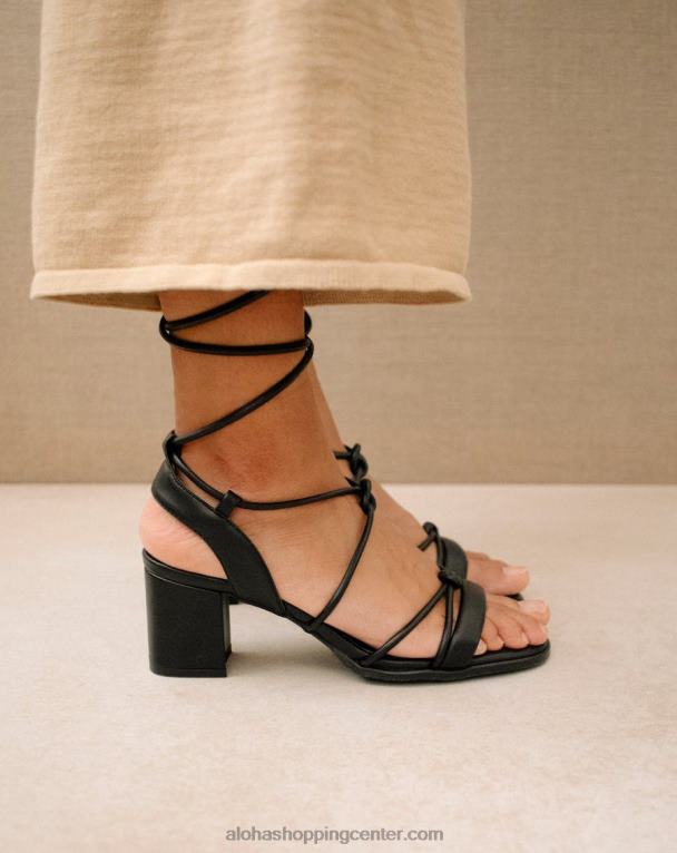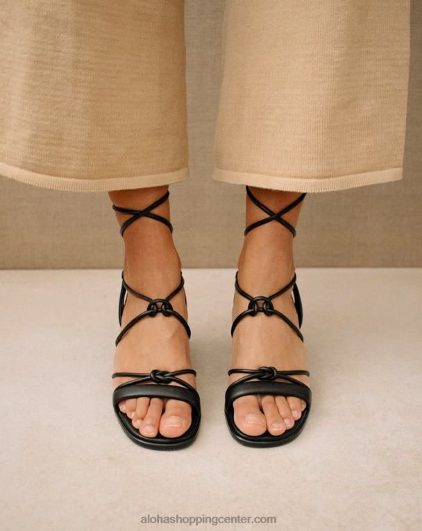 črni veganski usnjeni sandali z vezalkami in blok peto