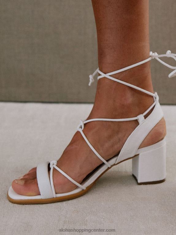 Sophie sandali, ki so narejeni za vse vaše počitniške potrebe, so vsekakor vredni porjavelosti. izdelani so iz belega veganskega usnja v zapleten dizajn na vezalke. sprednji in zadnji trakovi so napeti s tankimi vezmi, ki se ovijejo navzgor in okoli gležnja za varno prileganje. obvladljiva 6,5-centimetrska blok peta je zasnovana za udobje, tako da lahko hodite brez žuljev, kamorkoli vas poletje ponese.
