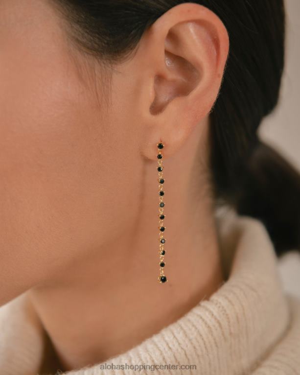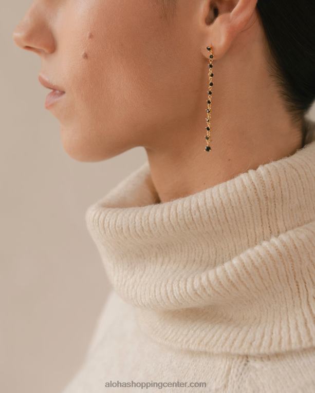 narejeni iz pozlačenega srebra 925 v spuščeni nitasti silhueti so naši uhani poželenja subtilni, a glamurozni. Izdelani so iz visečega pramena inkrustirane črne barve kristali, povezani z breztežno kabelsko verigo, ki binglja med premikanjem. ne glede na to, ali se odpravljate na poseben dogodek ali samo na srečanje z dekleti na sproščenem večeru, računajte na te utripajoče dojenčke, ki bodo vašemu izbranemu videzu dodali pridih stila.