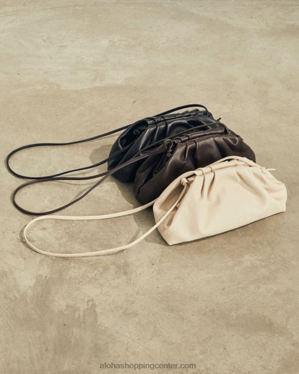 sanje minimalista. izdelana iz kot maslo mehkega belega usnja, d je naša torbica v stilu vzglavnika. njegova nagnjena silhueta ima nežne gube, ki ustvarjajo voluminozno obliko, podobno oblaku. nosite svojo v roki ali jo obesite čez ramo zahvaljujoč odstranljivemu usnjenemu traku.