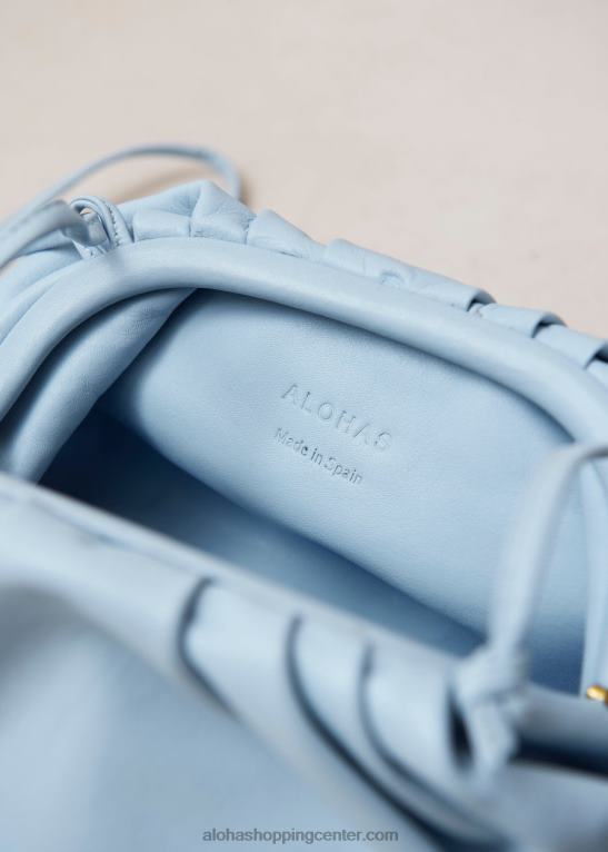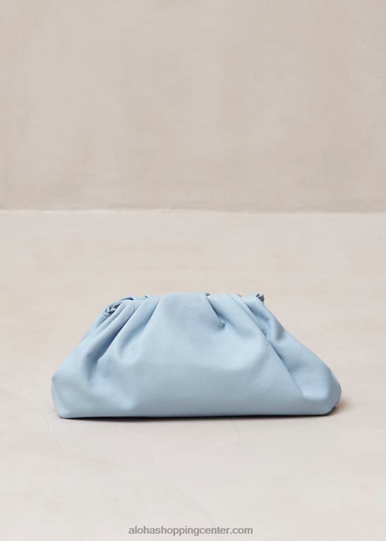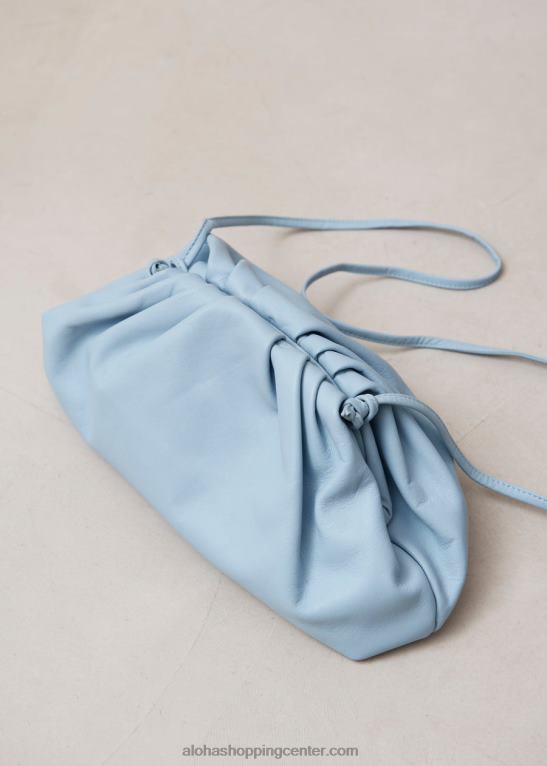 sanje minimalista. izdelana iz kot maslo mehkega otroško modrega usnja, d je naša torbica v stilu vzglavnika. njegova nagnjena silhueta ima nežne gube, ki ustvarjajo voluminozno obliko, podobno oblaku. nosite svojo v roki ali jo obesite čez ramo zahvaljujoč odstranljivemu usnjenemu traku.