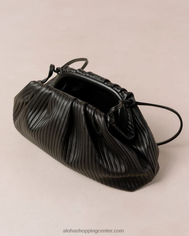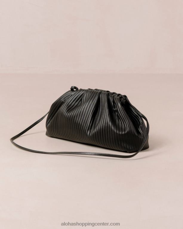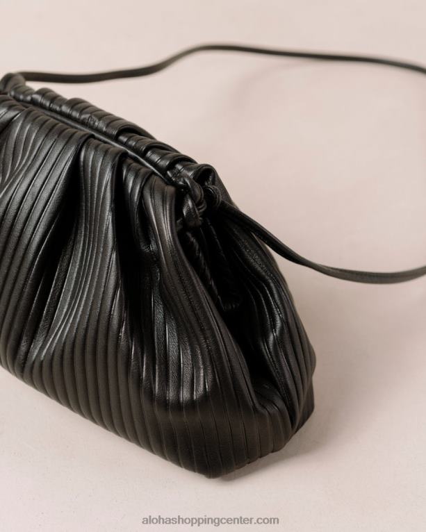 sanje minimalista. izdelana iz črnega usnja z mehkim rebrastim učinkom, je d nagubana torbica v stilu vzglavnika. njegova nagnjena silhueta ima nežne gube, ki ustvarjajo voluminozno obliko, podobno oblaku. nosite svojo v roki ali jo obesite čez ramo zahvaljujoč odstranljivemu usnjenemu traku.