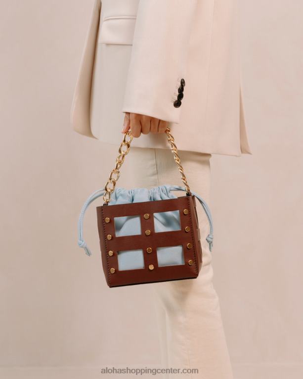 naredite prostor za nov dodatek v vaši omari z dodatki. n je glamurozna ročna torbica v obliki kocke z izrezom iz rjavega usnja in kontrastno torbico z vrvico za varno shranjevanje vaših osnovnih stvari. je prekinjen z zlatimi zatiči in je opremljen z debelim paščkom z verižico. nosite svojo v roki ali jo obesite čez ramo zahvaljujoč odstranljivemu usnjenemu traku.