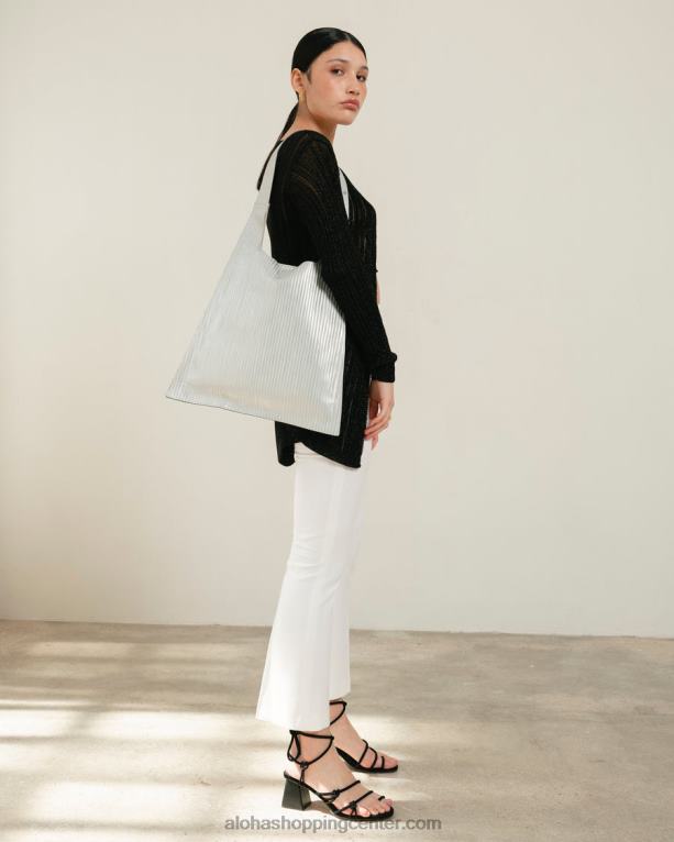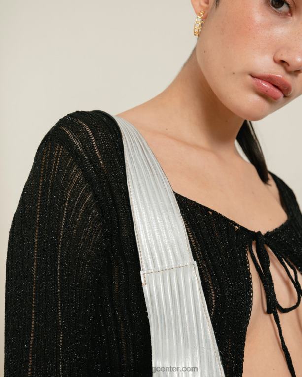 l je v celoti izdelana iz usnja s srebrnim rebrastim učinkom in predstavlja popolno torbo za večnamensko uporabo: je dovolj velika za vaš prenosnik, a tudi dovolj kompaktna, da jo lahko nosite samo bistvenega. mehak trak je dovolj dolg, da se udobno prilega čez ramo. postavite ga proti popolnoma črni obleki, da bo njegova enobarvna silhueta postala opazna.