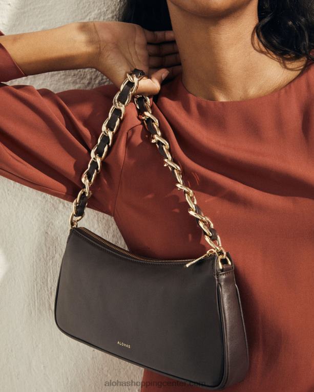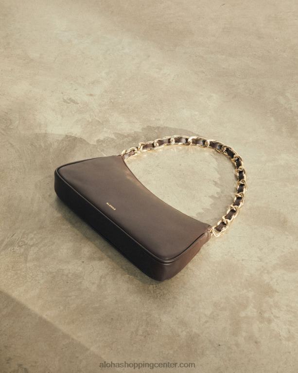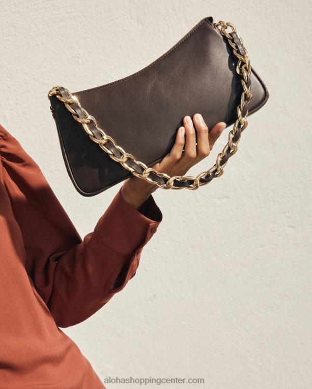 rjava usnjena naramna torba z verižnim paščkom
